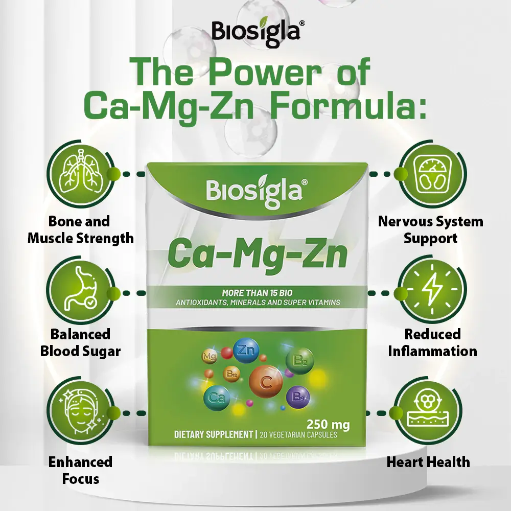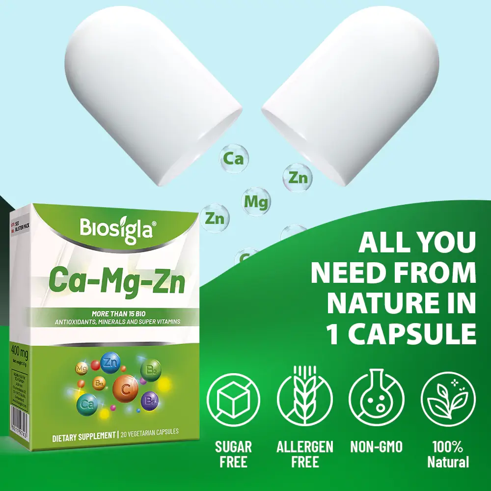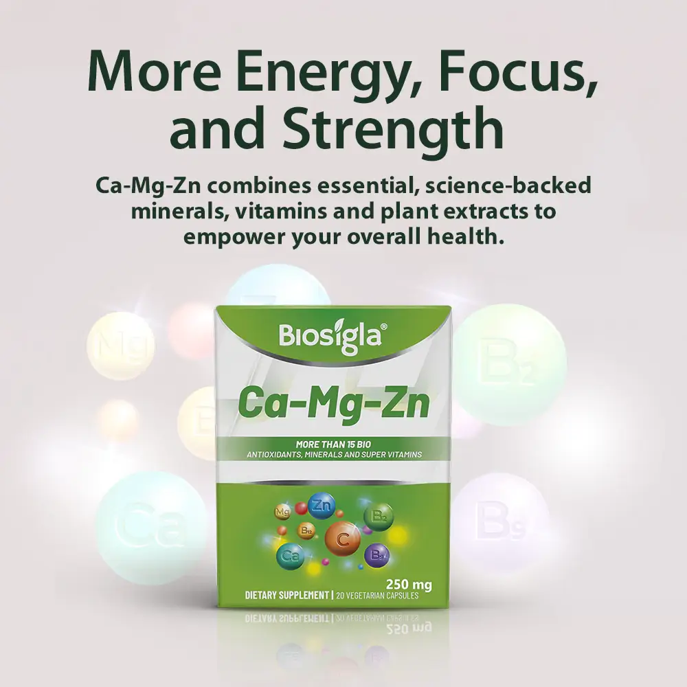 Our ingredients are meticulously selected by scientists from reputable suppliers, guaranteeing the effectiveness and quality of Biosigla Ca-Mg-Zn,, which is crafted in an FDA-registered facility.